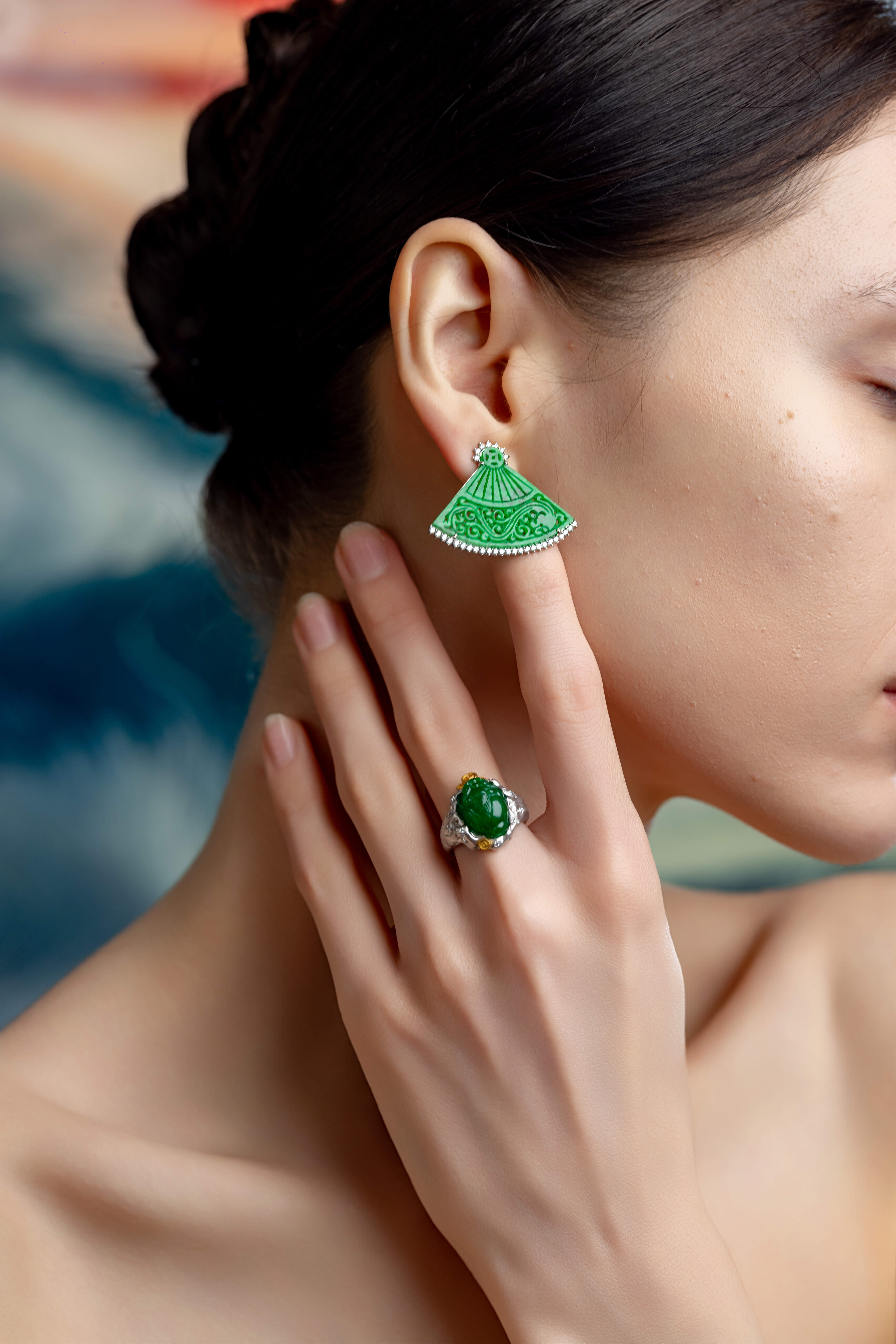 (模特佩戴的翡翠戒指不包含在价格内)